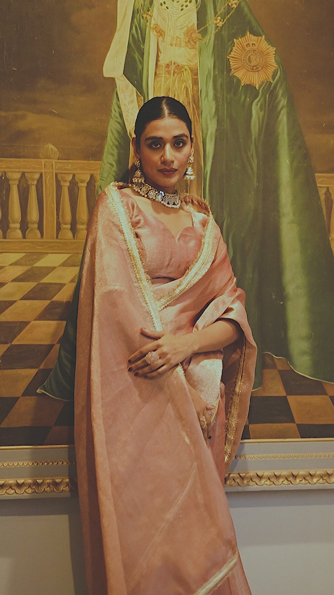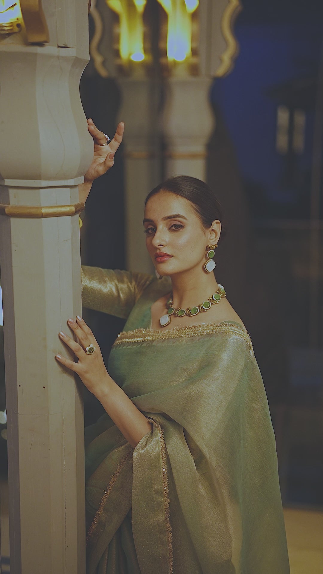 RANI SA – Tissue Shimmer Saree with Zari Weaving & Sequins Lace Border