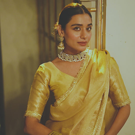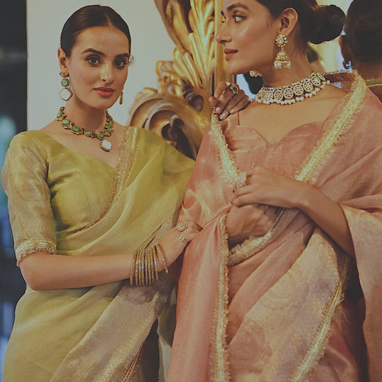 Introducing the RANI SA Collection — a tribute to timeless beauty and royal craftsmanship. Each saree in this collection is woven from luxurious tissue shimmer fabric, delicately adorned with zari weaving and a sequined lace border that catches the light with every move. Designed for celebrations, weddings, and every moment that calls for elegance — these sarees combine tradition and modern glamour in perfect harmony.