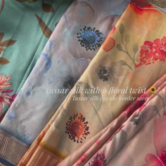 Tussar Silk Saree with Floral Print & Viscose Border